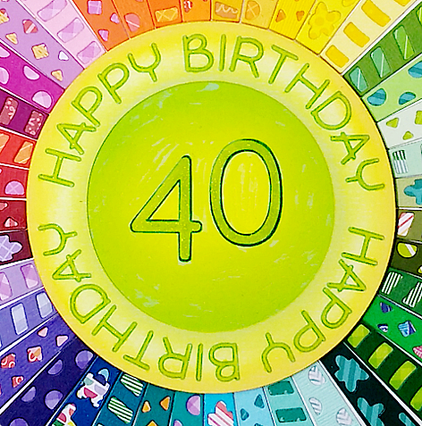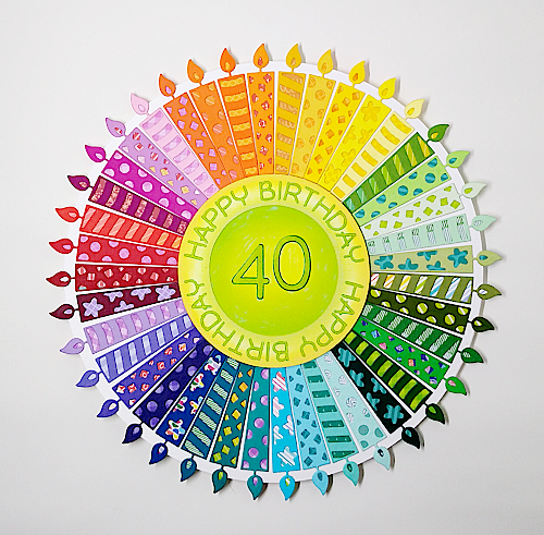 Eine XXL Spinning Card mit 40 Kerzen aus unterschiedlichem Cardstock, jeweils 40 mit und ohne Muster ausgestanzt und je zwei verklebt.